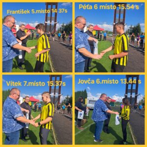 6.místo Petr Prchal  a 7.místo Vítek Spála – Kluci se dnes nechali mezi sebou moc vyhecovat. Běželi v rozběhu proti sobě a nedokázali si udržet klidnou hlavu. Pár špatných kroků je tak odsunulo na 6. a 7. místo. Péťa s časem 14,54 s , Vítek s časem 15,48 s. I tak předvedli obrovskou bojovnost a jsme na ně pyšní.